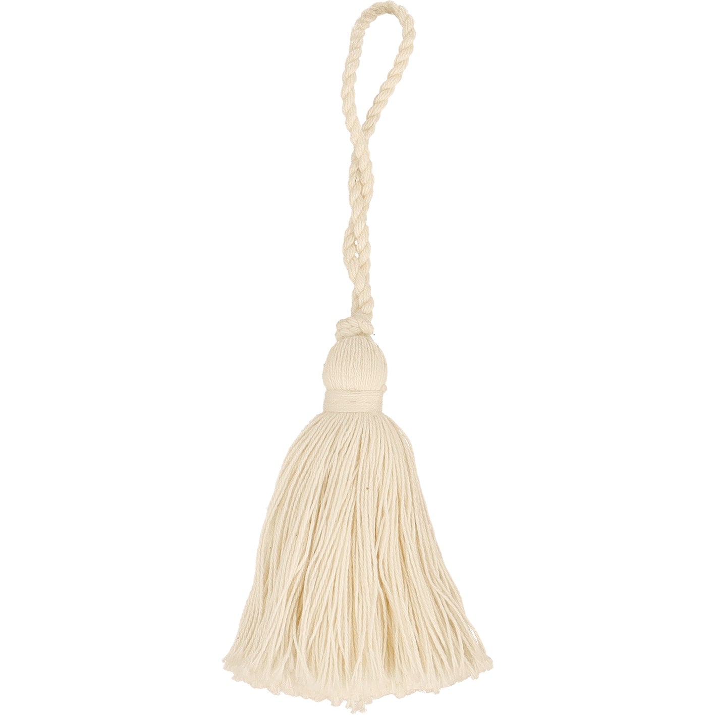 Een leuk kwastje voor aan de deurkast, afwerking van een kussen of voor een ander creatief project! Het kwastje is gemaakt van 100% katoen en heeft een lengte van 8 cm en het touwtje een lengte van 8 cm.