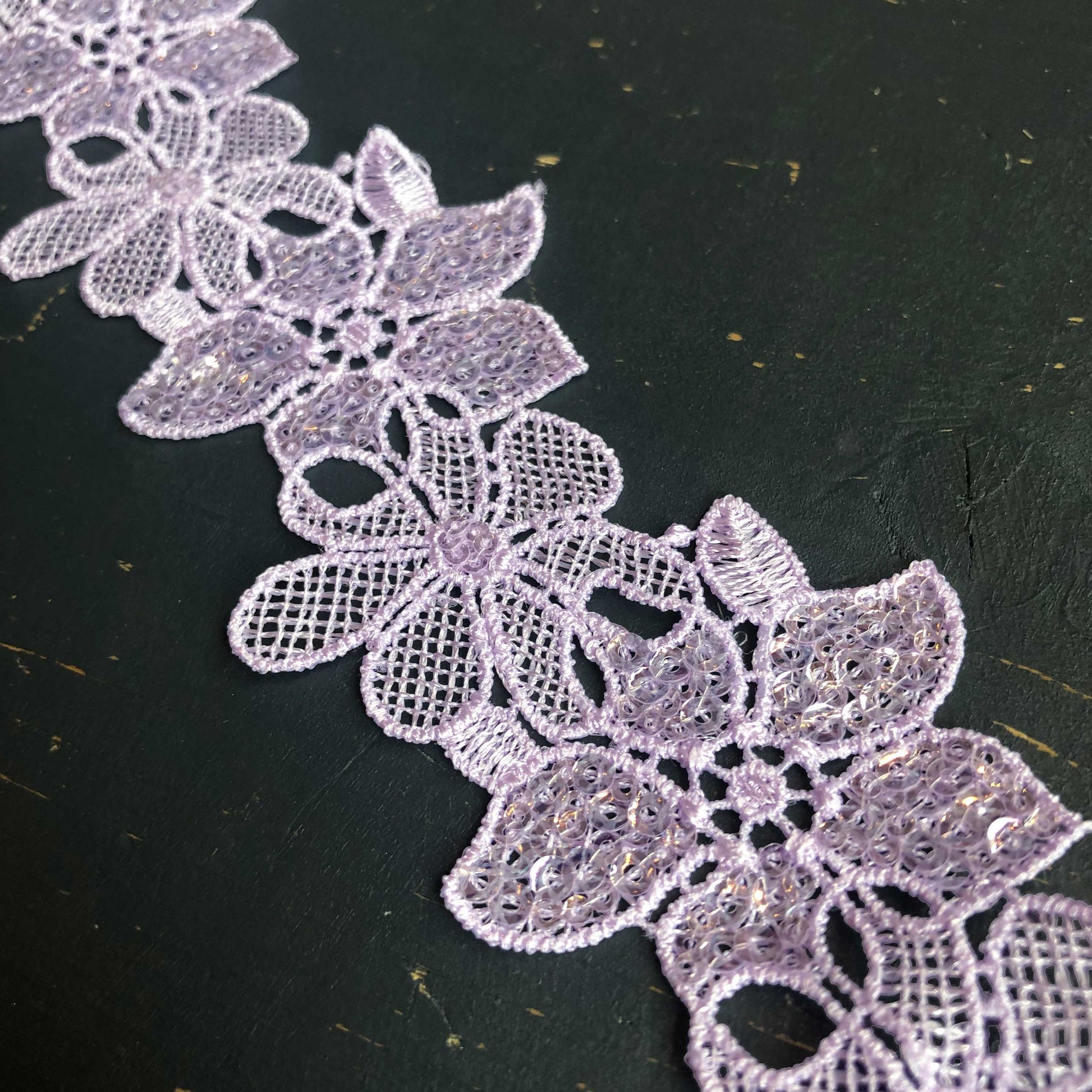 Dit speelse sierband is versierd met zachte, luchtige bloemetjes in een romantische zalmroze tint. De bloemen zijn gemaakt van een lichte, doorschijnende stof die subtiel meebeweegt, perfect voor het versieren van kleding, accessoires of decoratieprojecten met een vrolijke, vrouwelijke touch. De bloemen hebben een breedte van ongeveer 50/60 mm.