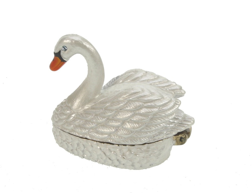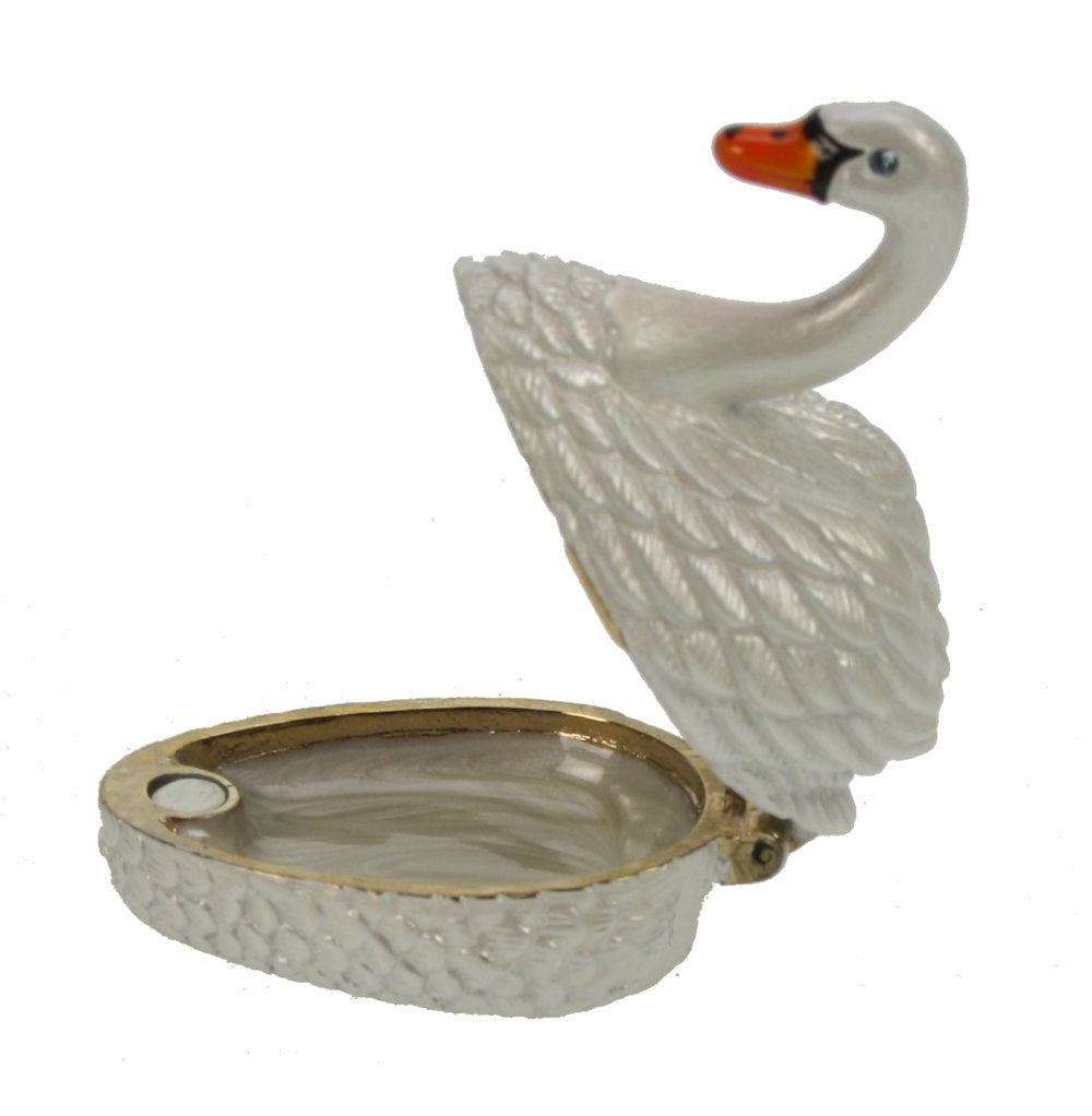 Dit betoverende kleine sierdoosje in de vorm van een sierlijke zwaan is een echte blikvanger. Het doosje opent door de vleugel omhoog te tillen, waardoor er een piepklein opbergvakje zichtbaar wordt—perfect voor het bewaren van een ring, klein aandenken of een mini-schatje.